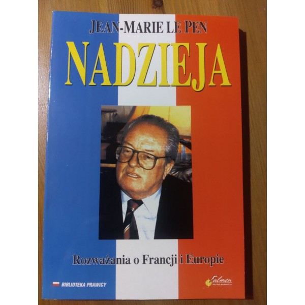 Zmarły 7 stycznia 2025 r. Jean Marie Le Pen nie bez kozery tytułowany jest "ojcem założycielem nowoczesnego nacjonalizmu" - to Jego Front Narodowy, założony w 1972 r. , stał się wzorem do nowoczesnje walki politycznej w realiach dyktatury demoliberalnej. Jego teksty możn abbyło znależć m.in. w "Szczerbcu". Ksiażka "Nadzieja" jest jedyną,jaka ukazała się w języku polskim. To także rarytas bibliofilski, liczący sobie ponad 30 lat! Tego nie da się już zdobyć!